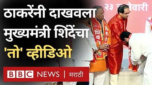 एकनाथ शिंदे उद्धव ठाकरे यांच्या पाया पडत असतानाचा व्हीडिओ दाखवल्यानंतर कार्यकर्ते 'वन्स मोअर, वन्स मोअर' ओरडत होते.