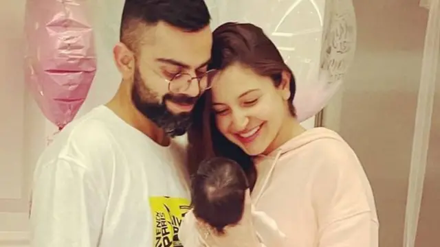 स्टेडियमच्या स्टॅंडवर वामिका तिच्या आईच्या कडेवर असून वडील विराट कोहलीचा खेळ पाहत असल्याचं दिसून येतं.