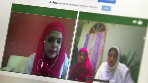 फातिमा रुबिनाचा रक्तदाब तपासते आणि आपल्या लॅपटॉपच्या स्क्रीनद्वारे त्याची माहिती डॉक्टरांना सांगते.
