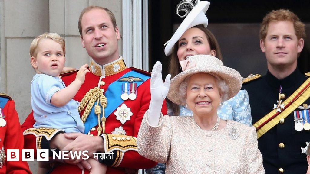 फोटो कॅप्शन, 2015 मध्ये ट्रूपिंग ऑफ द कलरमध्ये प्रिन्स विल्यम आणि राणीसोबत प्रिन्स जॉर्ज