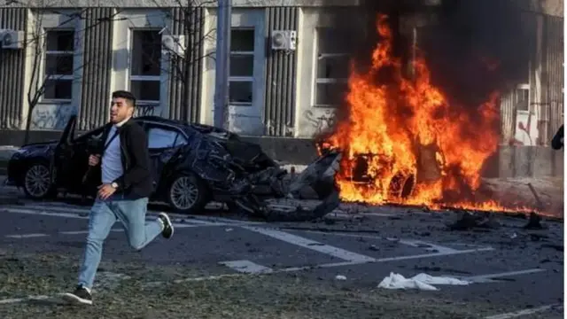 युक्रेनच्या गृहमंत्र्यांनी एका फेसबुक पोस्टद्वारे ही माहिती दिली. 6 कारला आग लागली तर अंदाजे 15 वाहनांचे या हल्ल्यात नुकसान झाले.