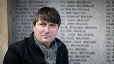 Simon speaks to Jim Cunningham, the volunteer Keeper Of The Clock, and serving soldier, Colin Simpson, about the significance of the memorial. Simon ends his journey with a reading of his poem, Memorial, that references his own family connection with the war and the importance of remembering.