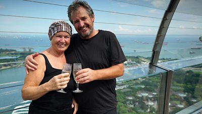 After racing twelve thousand miles, over two continents, across twenty-one countries and several seas, retired PE teachers Tony and Elaine Teasdale (62) were the first to reach Singapore and be crowned winners of Race Across The World 2019.