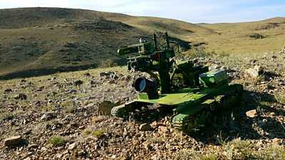 Before leaving for Mongolia, episode producer Paul Williams worked with an engineering team to develop and build a bespoke remote filming vehicle, fitted with a miniature gyro-stabilised gimble, that they named the CATerpillar.