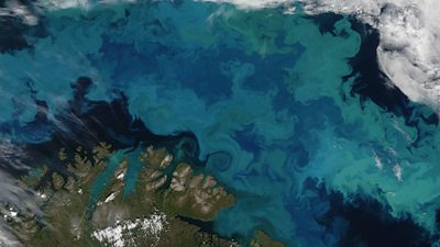 Pictured: Phytoplankton bloom in the cool waters of the Barents Sea off the coast of Norway and Russia. Image Credit: NASA