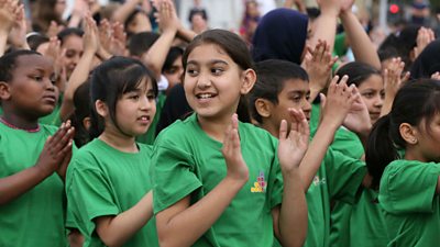 Ten Pieces, the BBC’s classical music initiative, joins the BBC Music Day festivities as 263 schools and almost 50,000 pupils across the UK will take part in special Ten Pieces assemblies, with broadcasts on Radio 3, Radio 2, CBBC and Local Radio. Children up and down the UK will attempt to break musical world records. In Bradford, 800 children aim to beat the current world record for Bamboo Tamboo, which is music created by hitting a bamboo stick on the ground. In Portsmouth over a thousand children will gather to create a new drumming world record. Their attempts will be covered on CBBC and BBC Regional TV.