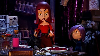 One of my favourites is where there’s a love potion, and as usual it’s turned to chaos and the potion has fallen into the wrong hands. Bella falls in love with Otto who is the most horrible, vile character in the whole of Scream Street, she chases after him, sings this mad song around him and then just completely turns into jelly.