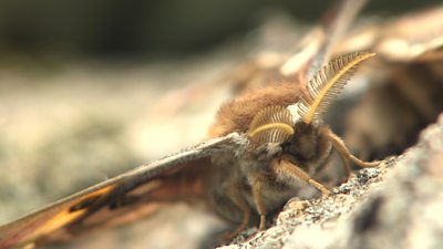 Gillian Burke travels to Dartmoor on the hunt for one Britain’s most spectacular moths. As the only silk moth in the UK, this bold and beautiful springtime insect has attractive markings, large wings and is often mistaken for a butterfly. The males can be found flying during the day in search of females, using their sensitive antennae which hone in on the females’ powerful pheromones. Gillian joins entomologist John Walters to set up a test to determine how powerful the pheromones are and how quick the males react to a female as she signals that she is ready to breed.