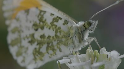 One of the first butterflies to emerge in spring, the orange-tip male is easily recognisable - but what goes on out of sight is truly extraordinary. We watch as the adults emerge from their winter slumbers in the chrysalis, dry their wings and launch into the big wide world. Once mated, the female lays her eggs one at a time, and when they hatch the caterpillars are in a race to eat enough to survive - facing some pretty dire dangers along the way.