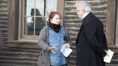 Pictured: Sally Wainwright with Jonathan Pryce on set
