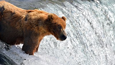 Bears and wolves might be waiting for salmon to arrive in the rivers and creeks, but before they run this gauntlet the salmon first have to deal with the wolves of the sea - orca. These highly intelligent predators work together in family groups and hunt everything from seals and salmon to sharks. Orca use a complex system of clicks and whistles to locate their prey and also to communicate with one another - each family has a different accent and researchers are able to use this and the shape of their fins to tell them apart. We’ll be catching up with orca as they join the feast, and discover how the families are faring this year.
