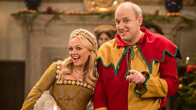 Tim travels back to Tudor England, arriving in the court of Henry VIII just as the Christmas celebrations are getting underway. But finding a silver lion isn’t going to be as easy as it seems…Catherine of Aragon (Sally Phillips) has a new lady in waiting, Anne Boleyn (Emma Bunton), who’s desperate to impress - and save her head - by arranging a fantastic Christmas party for the king.