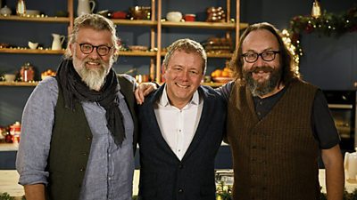 The Hairy Bikers have the perfect solution for any unexpected guests who turn up, creating a last-minute Christmas cake, potted cheese with bacon, and shallots and a crispy orange and honey-glazed salmon - as they find out how Jon Culshaw spends his Christmas.