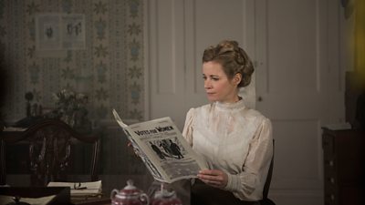 Pictured: Lucy Worsley reading Votes For Women