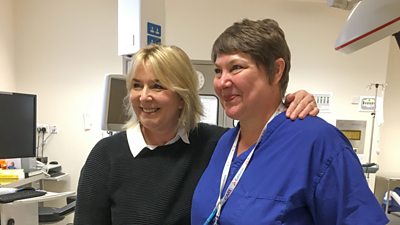 She returns to the hospital to meet the surgeon who operated on her and the consultant who diagnosed her, to say thank you and find out more about the condition that nearly killed her.
