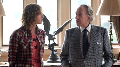Pictured: J Paul Getty III (Harris Dickinson) J Paul Getty (Donald Sutherland)