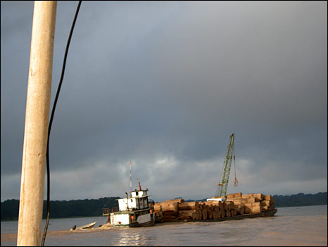 No hace falta alejarse demasiado de la ciudad para empezar a ver las barcazas que se llevan los tesoros de estas selvas.
