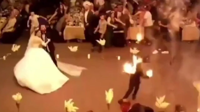Las primeras pesquisas apuntan que pudo originarse por los fuegos artificiales que se encendieron mientras los novios bailaban.