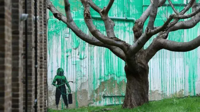 "Estamos en primavera y este árbol debería estar repleto de hojas, pero Banksy debió de pasar por delante y pensó en lo miserable que parece", dijo.
