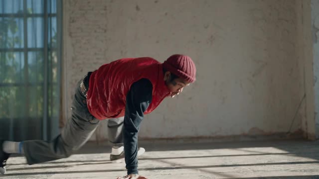 Implica movimientos acrobáticos y juegos de pies complejos, desde volteretas y trucos hasta un bailarín que gira sobre su cabeza.