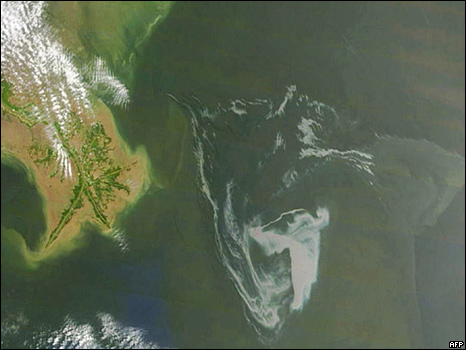 Las imágenes satelitales (tomadas el sábado) muestran que la mancha tiene ya una superficie de 9.000km2., un tamaño similar al de Puerto Rico.