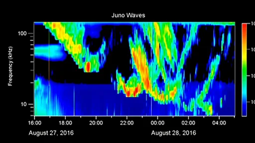 La frecuencia de las señales de Juno van de 7 a 140 kHz y lo que se escucha es producto de 13 horas de grabaciones que comenzaron apenas la sonda culminó su primer acercamiento al planeta.