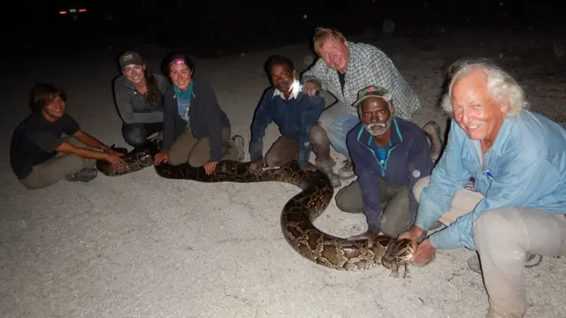 Una vez que las atrapan, las serpientes son sacrificadas humanamente, le explica FWC a BBC Mundo.
