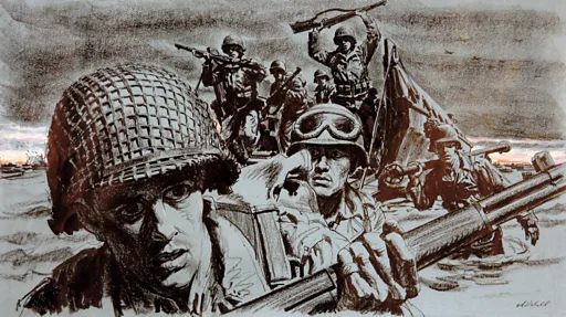 Varias divisiones de paracaidistas aterrizaron detrás de las líneas enemigas a primera hora, mientras miles de barcos se reunían enfrente de las costas de Normandía para el ataque principal.