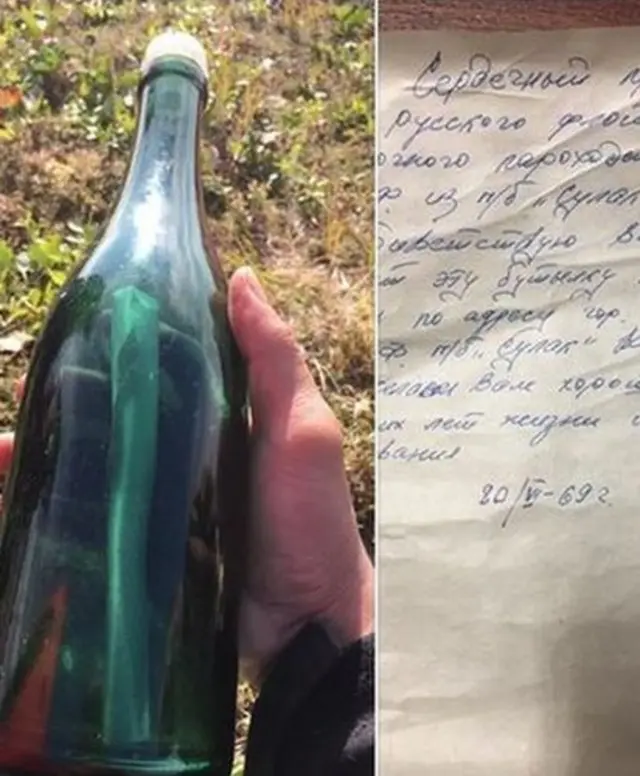"¡Saludos cordiales! Desde el buque insignia de la Flota Rusa del Lejano Oriente VRXF Sulak, saludo a quien encuentre esta botella y le pido que responda a toda la tripulación a la siguiente dirección Vladivostok -43 BRXF Sulak. Le deseamos buena salud, una larga vida y feliz navegación. 20 de junio de 1969", decía la nota.