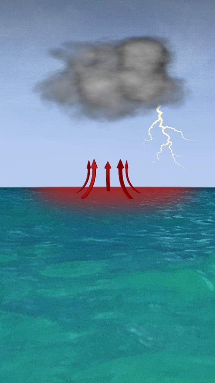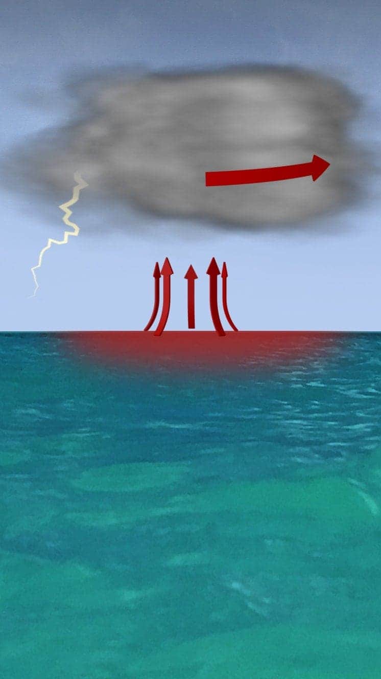 Cuando el agua del océano se calienta, el aire se eleva y forma remolinos para rellenar la baja presión que esto crea.