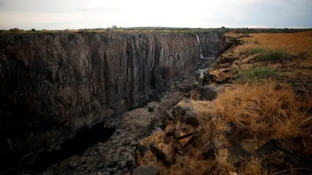 Elisha Moyo, del ministerio de Ambiente Zimbabue, advirtió a la BBC de que es posible que un día las cataratas Victoria lleguen a secarse completamente.