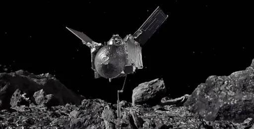 Para tomar muestras, la Osiris-Rex utilizó un largo dispositivo con un depósito en forma de anillo en el extremo. La nave descendió hacia la superficie de Bennu lanzando un chorro de nitrógeno que le permitió extraer materiales del asteroide.