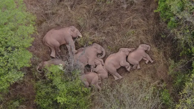 La extraordinaria imagen del descanso que se tomó la manada de elefantes que ha viajado 500 kilómetros por el sur de China