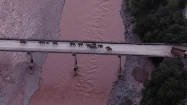 Funcionarios del organismo que protege la vida silvestre indicaron en una conferencia de prensa el lunes que los elefantes habían cruzado el puente del río Yuanjiang y se dirigían al sur hacia su reserva natural, administrada por la ciudad de Puer.