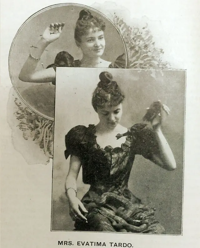 Ser mordida por una serpiente cascabel, le dijo Evatima Tardo al diario Inter Ocean de Chicago, "es tan excitante como tomarse un whisky" y el whisky, aclaró, no la emborrachaba. Podía tomarse un cuarto de galón sin sentir sus efectos.