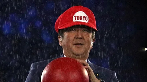 El primer ministro japonés, Shinzo Abe, sorprendió a todos al aparecer disfrazado del emblemático héroe de videojuegos Mario Bros. desde una tubería verde de artificio.