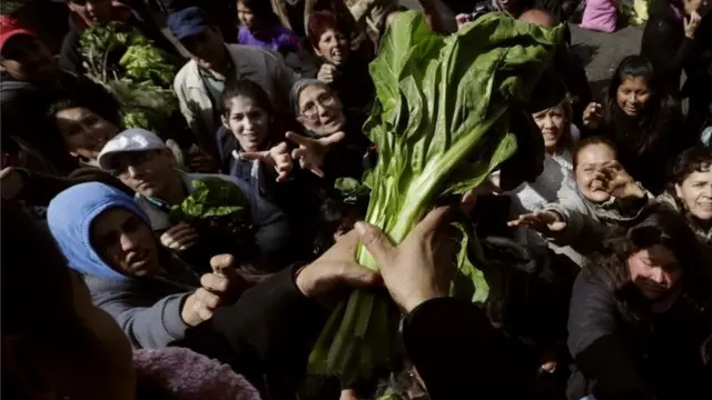 Las colas de gente se alargaron por varias cuadras, mientras los campesinos, que en este rubro son en su mayoría de origen boliviano, arrojaban desde sus camiones, como quien tira billetes a una muchedumbre, las hortalizas que en este país son cada vez más caras.