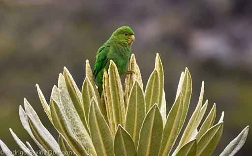"Un lorito, una diminuta especie que habita en los páramos más fríos y altos sobre el nivel del mar en Colombia", dice Calderón, quien seleccionó a esta especie endémica de Colombia, sólo vista en la Cordillera Central del país.