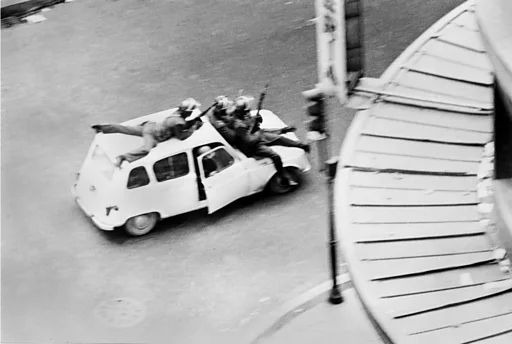 Allende, que lleva casco y porta un fusil, ordena después de la 1 de la tarde, la rendición y salida de quienes aún lo acompañan.