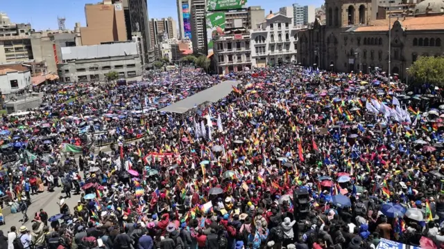 La enorme movilización oficialista se produce tres días después de las elecciones presidenciales del 20 de octubre y en medio de denuncias de fraude electoral, cuando todavía no está definido si Evo Morales triunfó en primera vuelta o deberá dirimir la presidencia con el opositor Carlos Mesa en una histórica segunda vuelta.