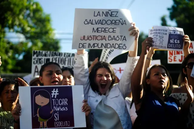 En los carteles que portaban se leían mensajes como "las niñas no se tocan, ni se violan, ni se matan" o "la justicia salvadoreña le ha fallado a la niñez por muchos años. ¡Basta ya!".