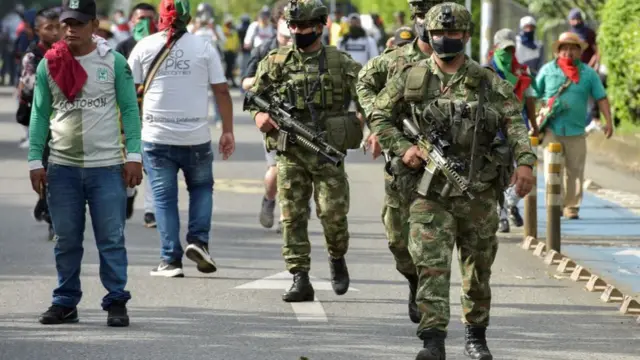 La policía de Cali, por su parte, indicó que recibió videos en los que se ve a indígenas "generando disparos con armas de fuego" y "realizando saqueos a casas y apartamentos del sector".