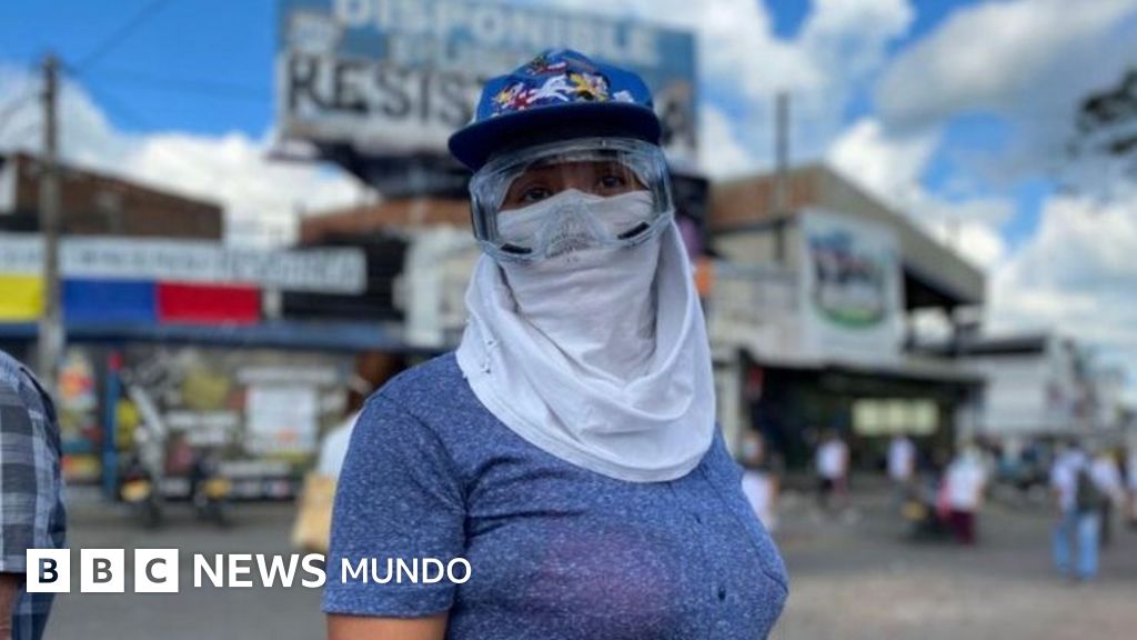 "La mona", una de las manifestantes que habló con BBC Mundo encapuchada y en condición de anonimato, tiene 24 años, es madre, estudia contaduría y va vestida de ropa deportiva y gorra de muñecos.