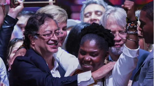 Este será "el gobierno de la gente, de las manos callosas, el gobierno de la gente de a pie, el gobierno de los nadies y las nadies de Colombia", festejó Márquez antes de dar paso al discurso de Petro.
