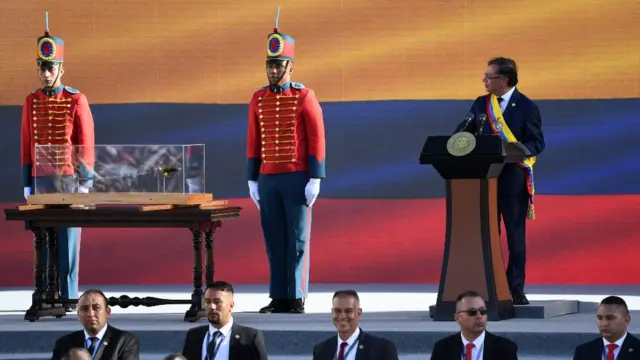 La primera orden de Gustavo Petro como presidente de Colombia, justo apenas tomó posesión este domingo, fue que la espada del libertador Simón Bolívar —aquella que el M19, la guerrilla a la que perteneció, se robó en forma de protesta en 1974— fuera traída a la ceremonia.
