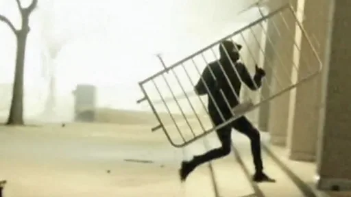 Posteriormente, algunos rompieron ventanas en el salón donde se iba a realizar la charla, lanzaron bombas de humo e iniciaron al menos un incendio.
