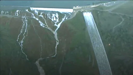 El Departamento de Recursos Hídricos de California dijo el domingo que estaba liberando hasta 2,830 metros cúbicos de agua por segundo desde el vertedero principal para tratar de drenar el lago.