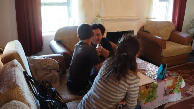 La profesora de Niko, Liljana Luani, nos llevó por carretera y en barco a visitarlo en su aislada comunidad. Luani está especializada en enseñar a los "niños ensangrentados" en sus casas, de las que no pueden salir ni siquiera para ir al colegio.