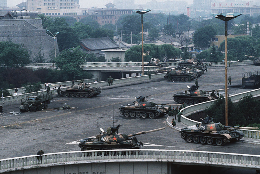 Tras la violenta represión que se produjo en la noche del 3 al 4 de junio de 1989 -y que acabó con un número indeterminado de muertos, que algunas fuentes sitúan en los cientos o incluso miles-, la mañana del 5 de junio se produjo la imagen que se hizo mundialmente famosa.