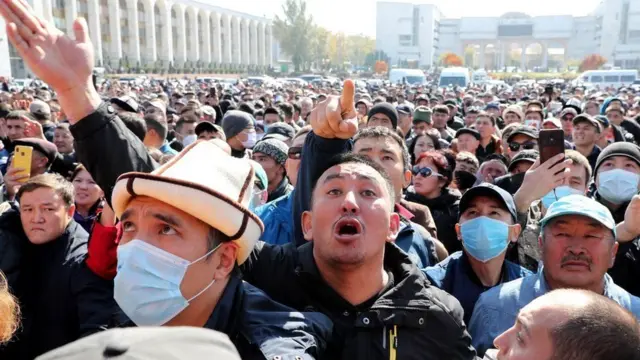 Un día después de los comicios unas 5.000 personas se reunieron en Ala-Too, una céntrica plaza de la capital kirguisa, Bishkek, para protestar contra los resultados electorales.